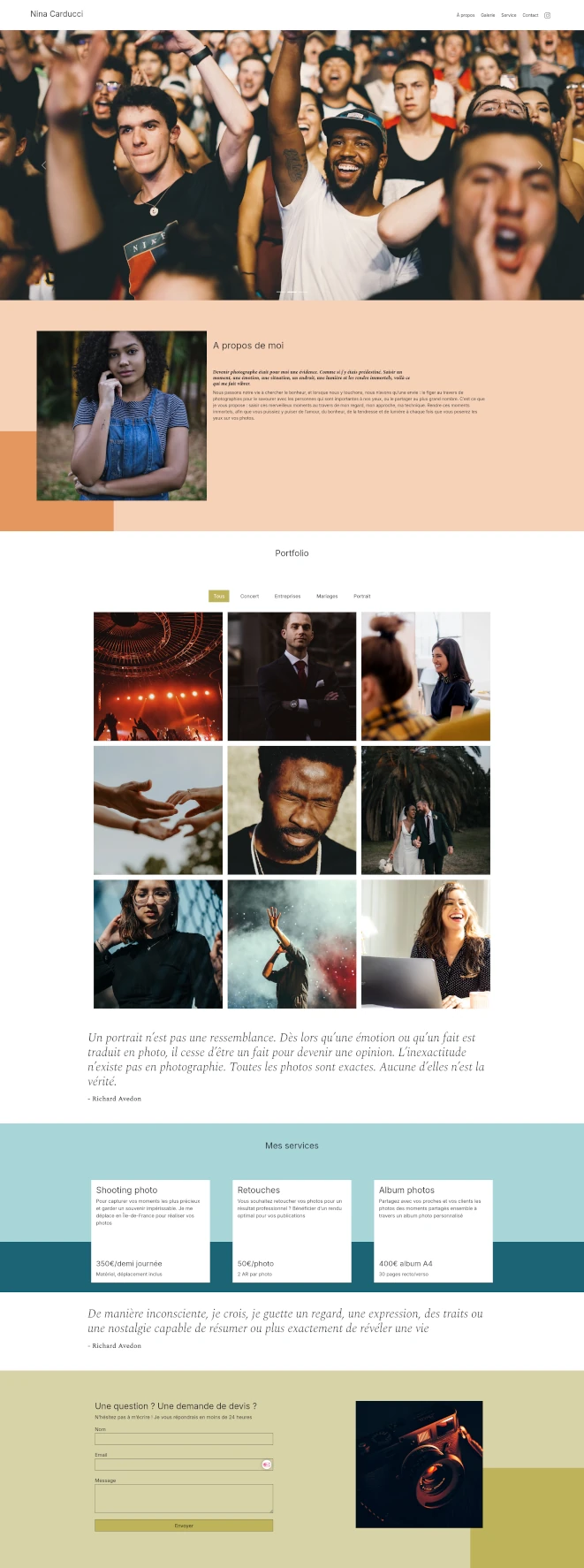 Nina Carducci — portrait and wedding photographer based in Paris. A strong visual identity already in place. A site that was actively hiding it from the people who would have hired her.