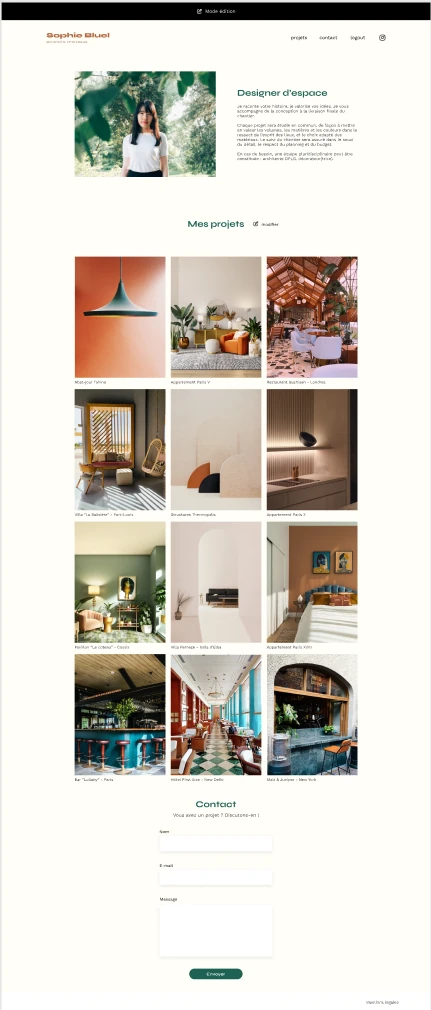 Sophie Bluel — interior designer running her own practice. The kind of professional who finishes a project on Friday and wants it on her site by Monday, without filing a ticket with anyone.